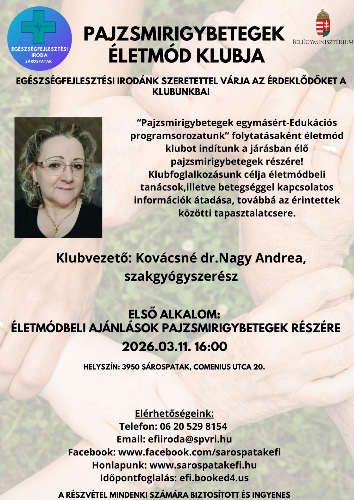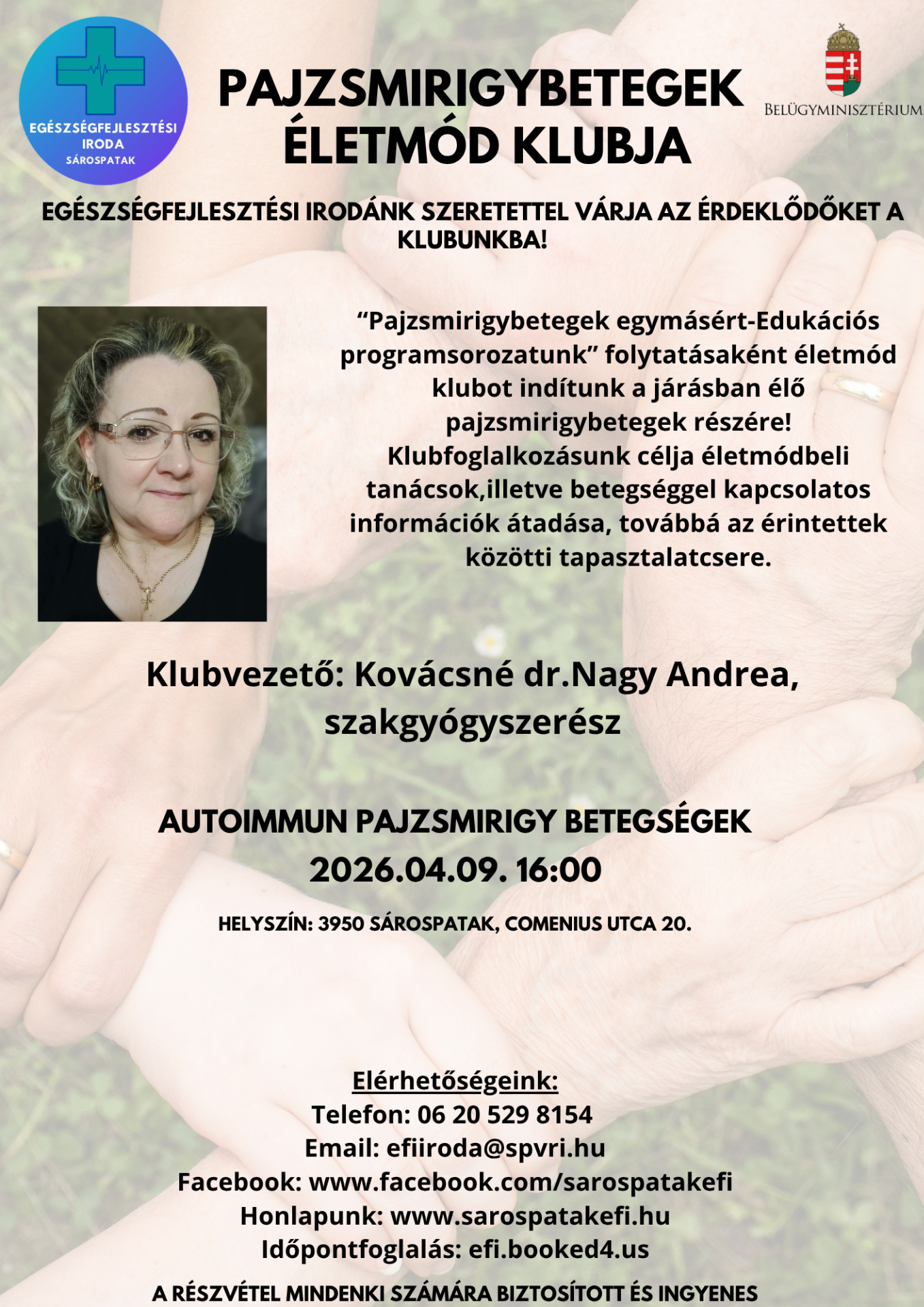klubformában támogatni a járás pajzsmirigybetegeit. Célunk lehetőséget