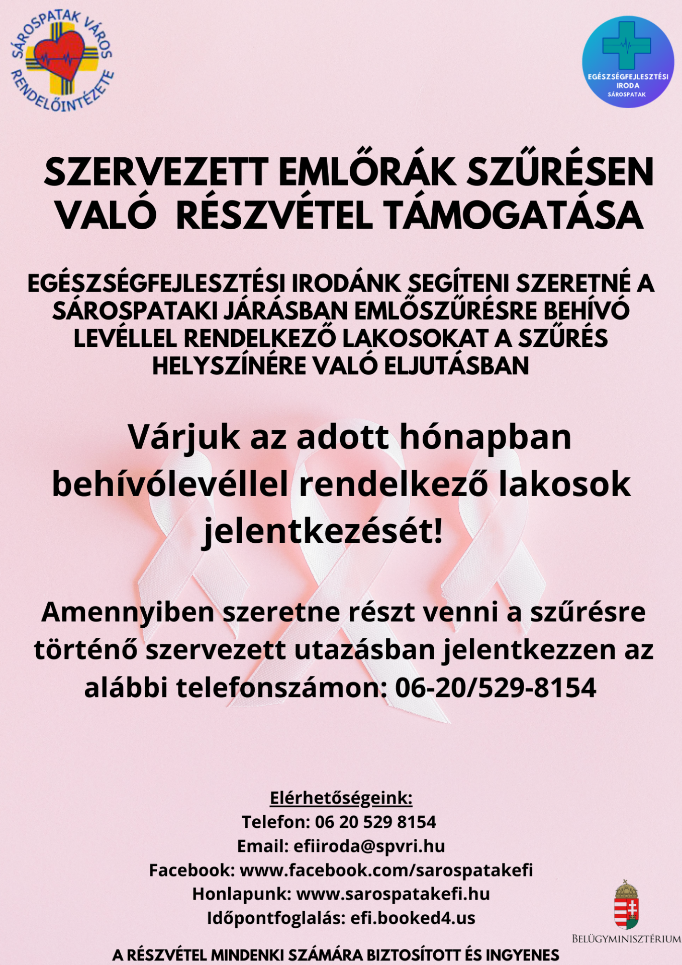 Egészségfejlesztési Irodánk 2025.10.01-jén az emlőrák elleni küzdelem világnapján figyelemfelhívó sétát és előadást szervez.